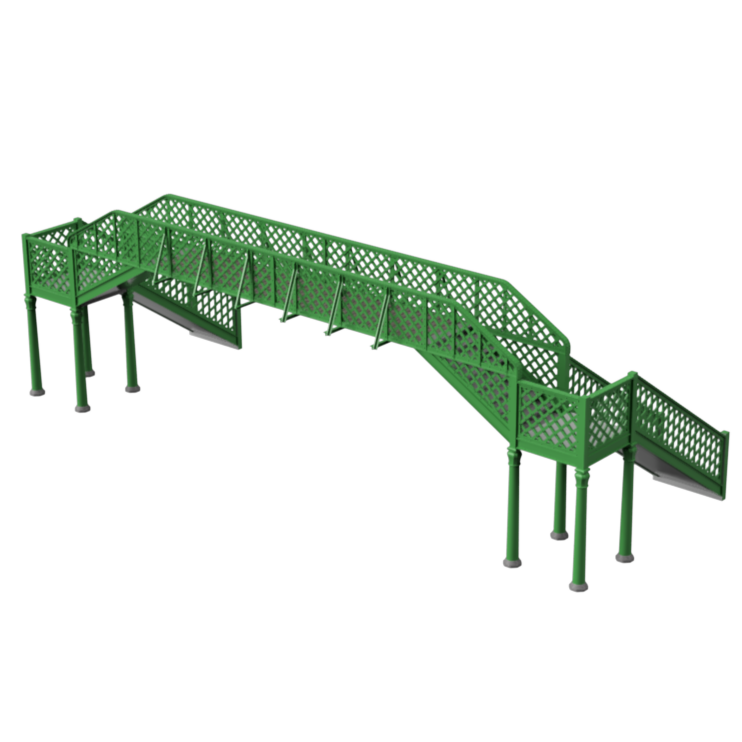 This model is of a platform footbrige built by the GCR, whcih later amalgamated into the LNER. model featured detaied handrails and a modular design that allows multiple kits to be connected together. This kit contains a bridge capable of spanning 2 tracks.